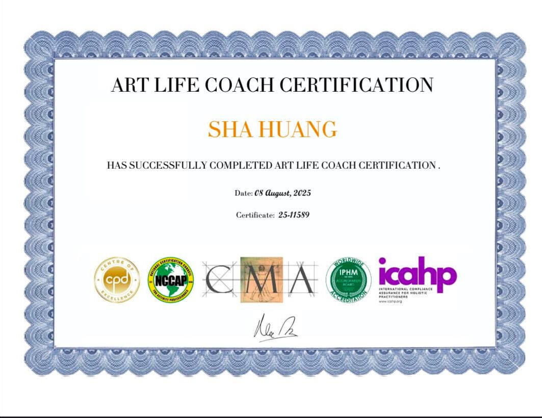 I’m Sha Huang—artist, poet, art-based life coach, and professor—exploring healing and transformation through art, writing, and community.